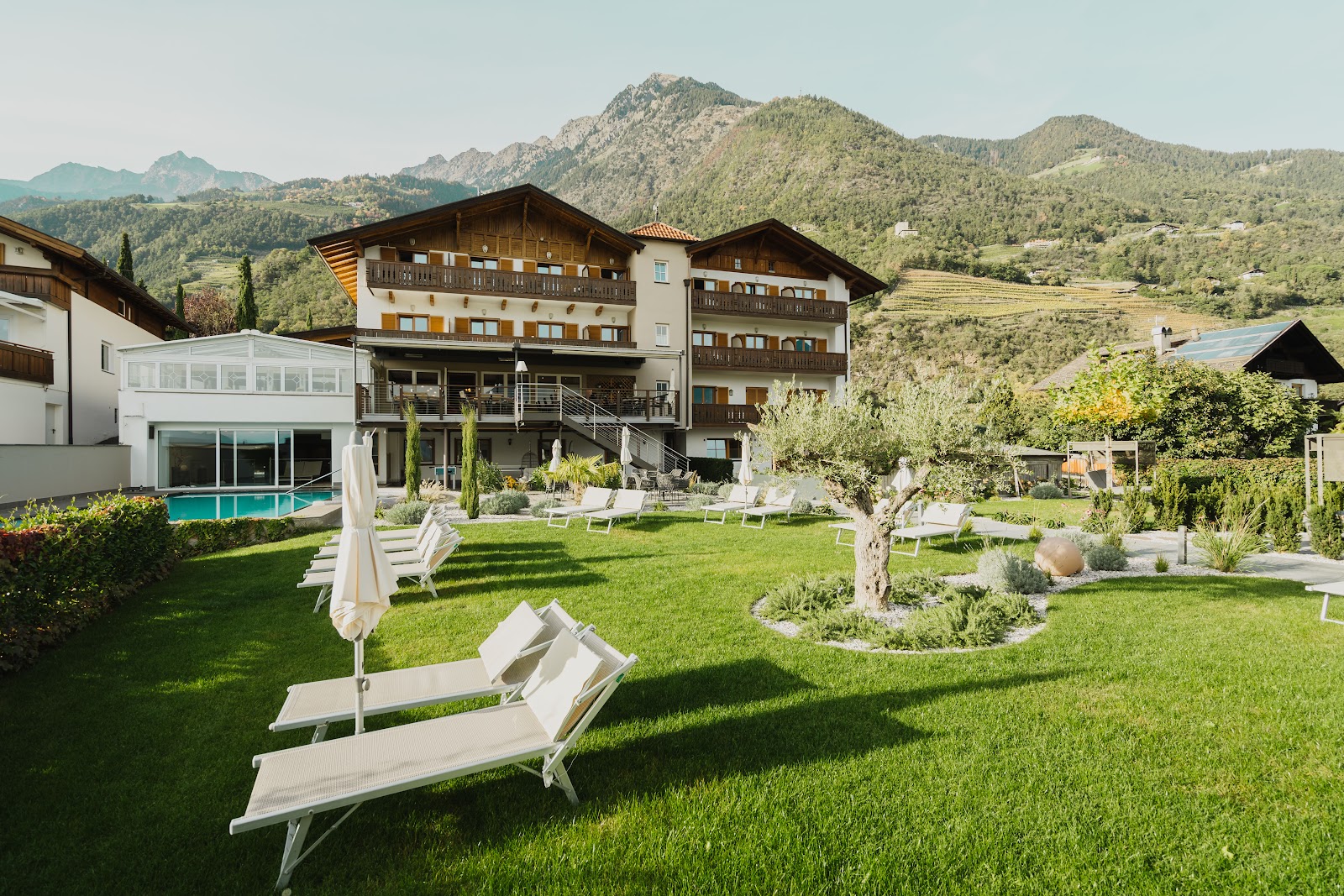 Im nordwestlich an Meran grenzenden, zu beiden Seiten der Etsch liegenden Gartendorf Algund erwartet das Vita Aktiv Hotel Der Heinrichshof seine Urlaubsgäste. Die Gemeinde Algund liegt umgeben von Obstgärten und Weinbergen am Fuße der Texelgruppe und ist bekannt für ihr sonnnenreiches mediterranes Klima. Der auf einer kleinen Anhöhe zu findende familiengeführte Heinrichshof gilt als ideales Wanderhotel, von dem aus das als Wanderparadies bekannte Meraner Land erkundet werden kann. Radfahrer und Biker können mit einem ausgeliehenen oder dem eigenen Rad Ausflugsziele entlang des Etschradwegs oder auf dem Vinschgauer Radweg ansteuern.