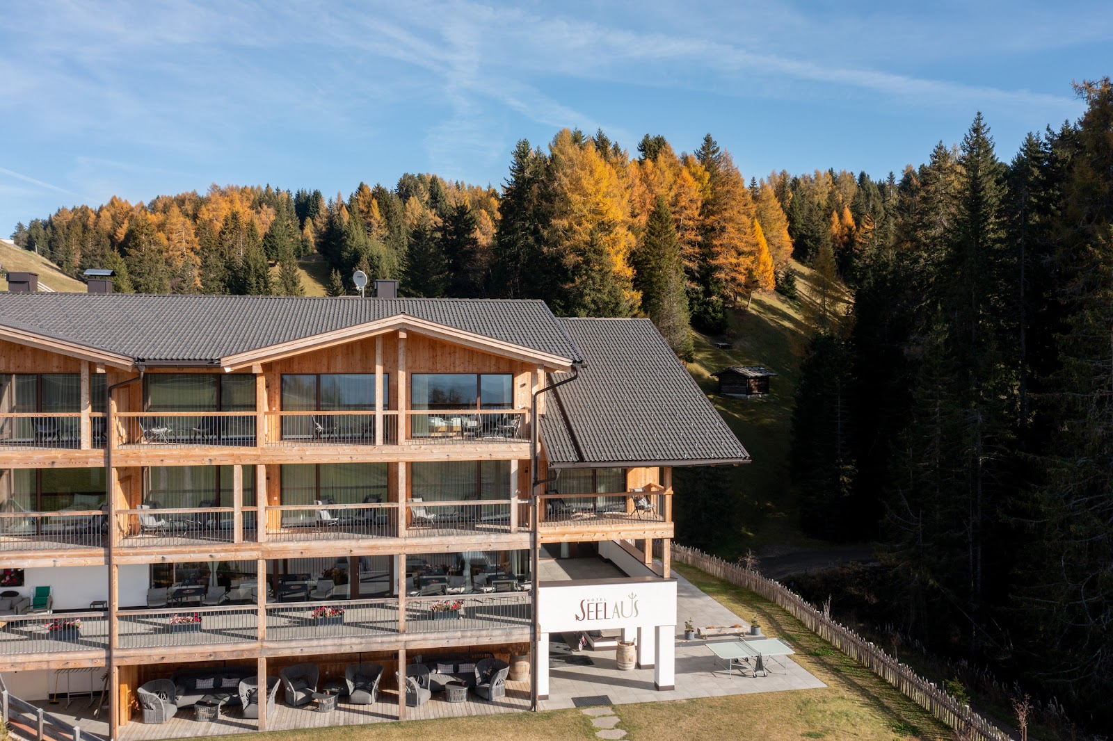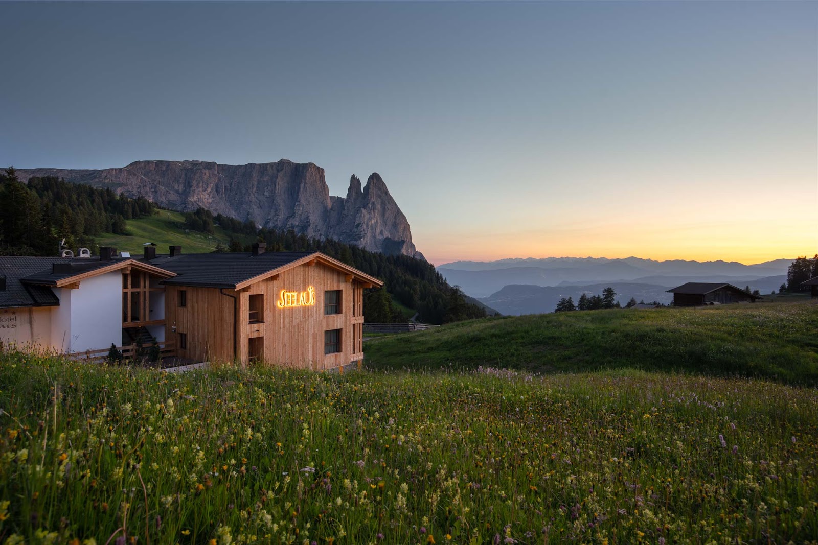 Das Hotel Seelaus auf 1.800 Höhenmeter mit seinen komfortablen Zimmern und Suiten mit Balkon, dem Panoramablick über die Seiser Alm, mitten im Naturschutzgebiet, liegt direkt an Wanderwegen und Skipisten.