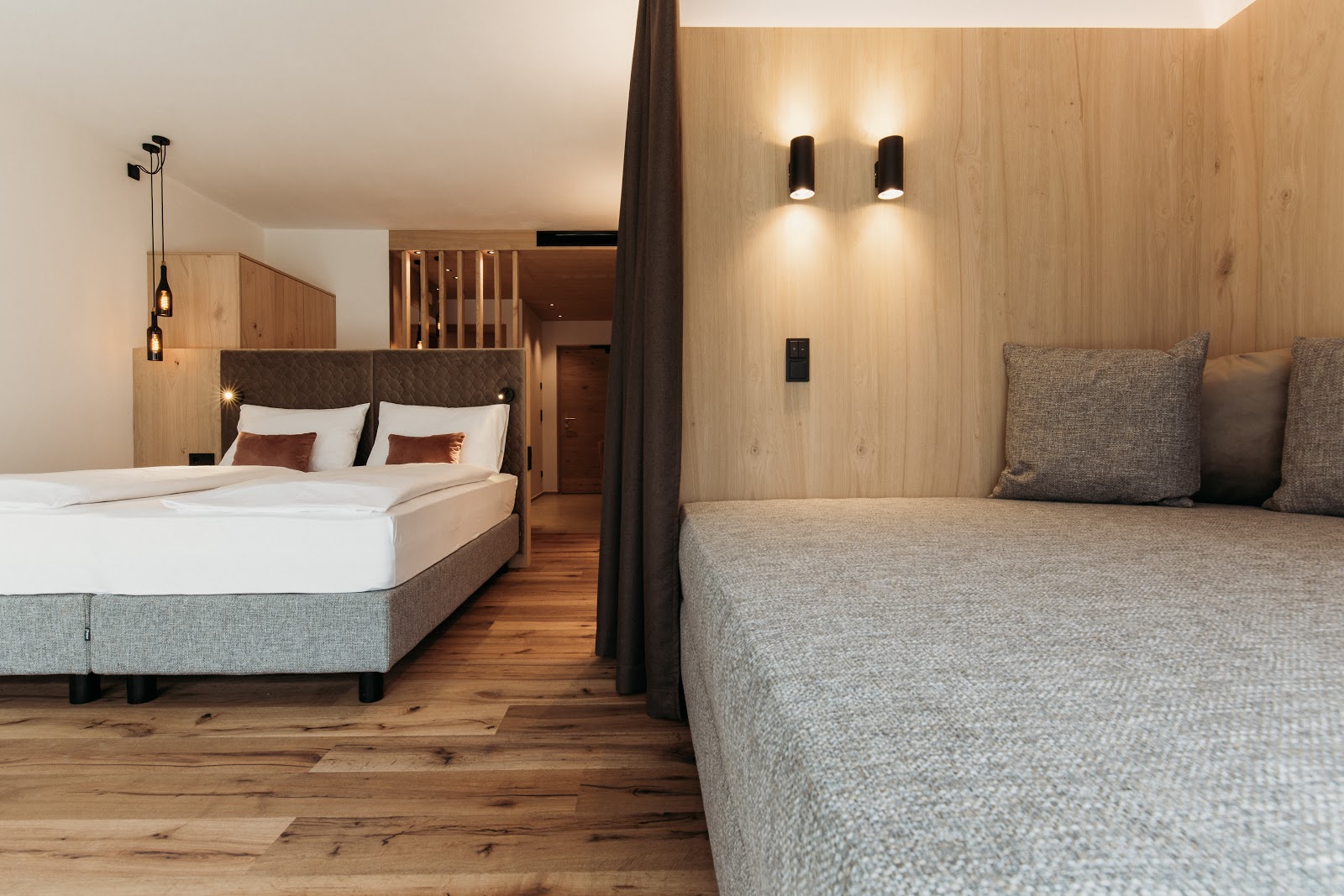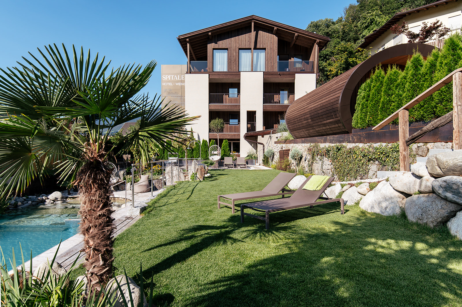 Im Weingut & Genusshotel Spitalerhof im italienischen Urlaubsort Klausen stehen für Gäste 37 Zimmer und Suiten für einen unvergesslichen Urlaub in Tirol bereit. Sie wurden mit viel Geschmack und Detailliebe unter Nutzung natürlicher Materialien eingerichtet. Neben den klassischen Zimmern und exklusiven Suiten wartet auch eine Besonderheit im Spitalerhof auf Gäste: die Fassl Lodge. Hierbei handelt es sich um ein Doppelzimmer, welches sich in einem freistehenden und einem Weinfass nachempfundenen Bau befindet.