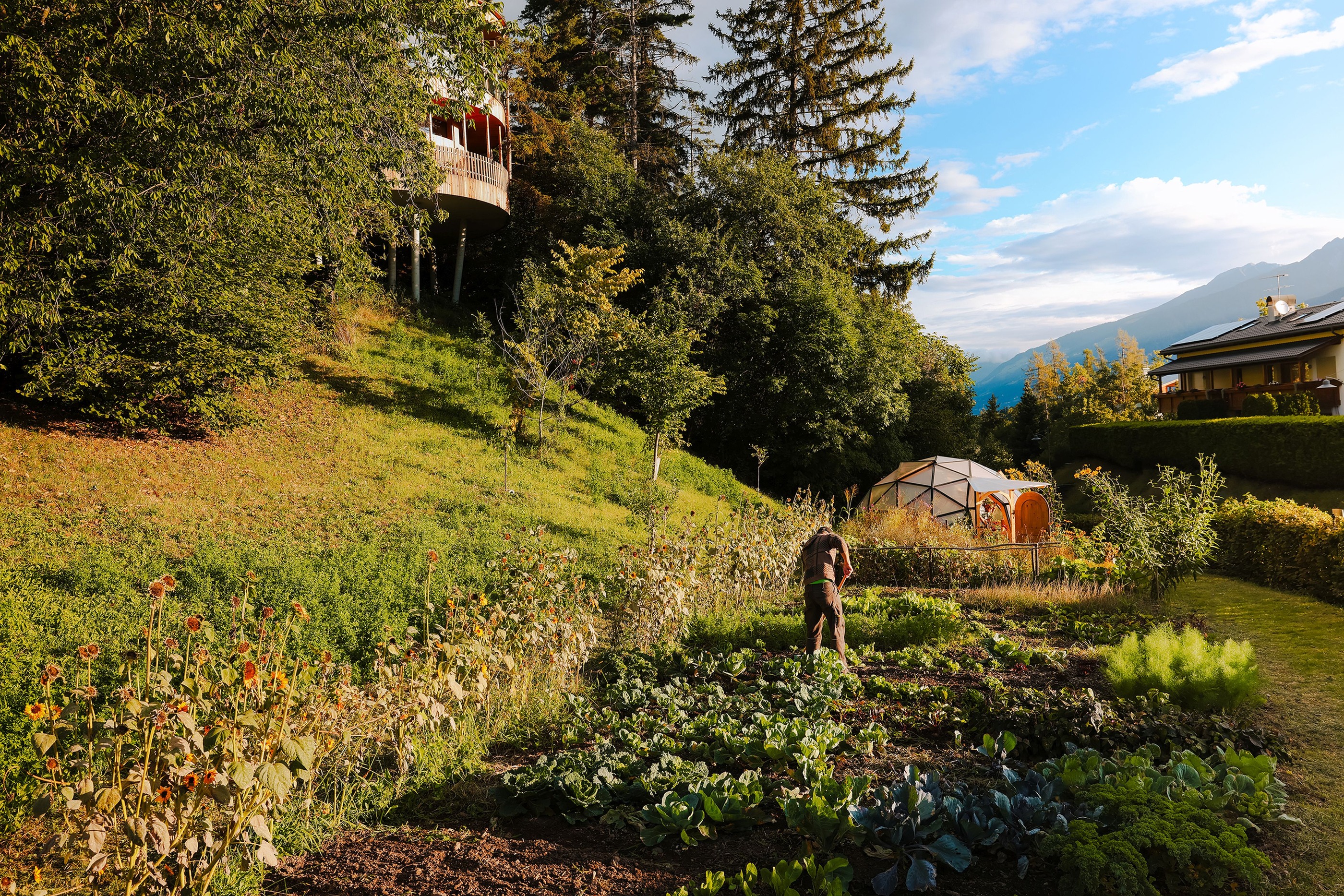 Völlan, ein sonnenverwöhnter Ort oberhalb von Lana und südlich von Meran, liegt eingebettet zwischen Wiesen und Obstgärten im Völlaner Mittelgebirge. Genau hier befindet sich das Hotel Der Waldhof²: ruhig gelegen, naturnah – und zugleich ein idealer Ausgangspunkt, um Meran, das Etschtal und die umliegenden Berge zu entdecken. Direkt am Haus beginnt der hauseigene Waldpark – ein Stück Natur, das sofort entschleunigt. Zwischen alten Bäumen und dem einzigartigen Biotop wird aus einem Spaziergang schnell ein Innehalten. Momente, die in Erinnerung bleiben, entstehen im beheizten Infinitypool mit Mayenburg-Panorama, während rund ums Hotel sonnige Plätze zum Lesen und Entspannen einladen.
