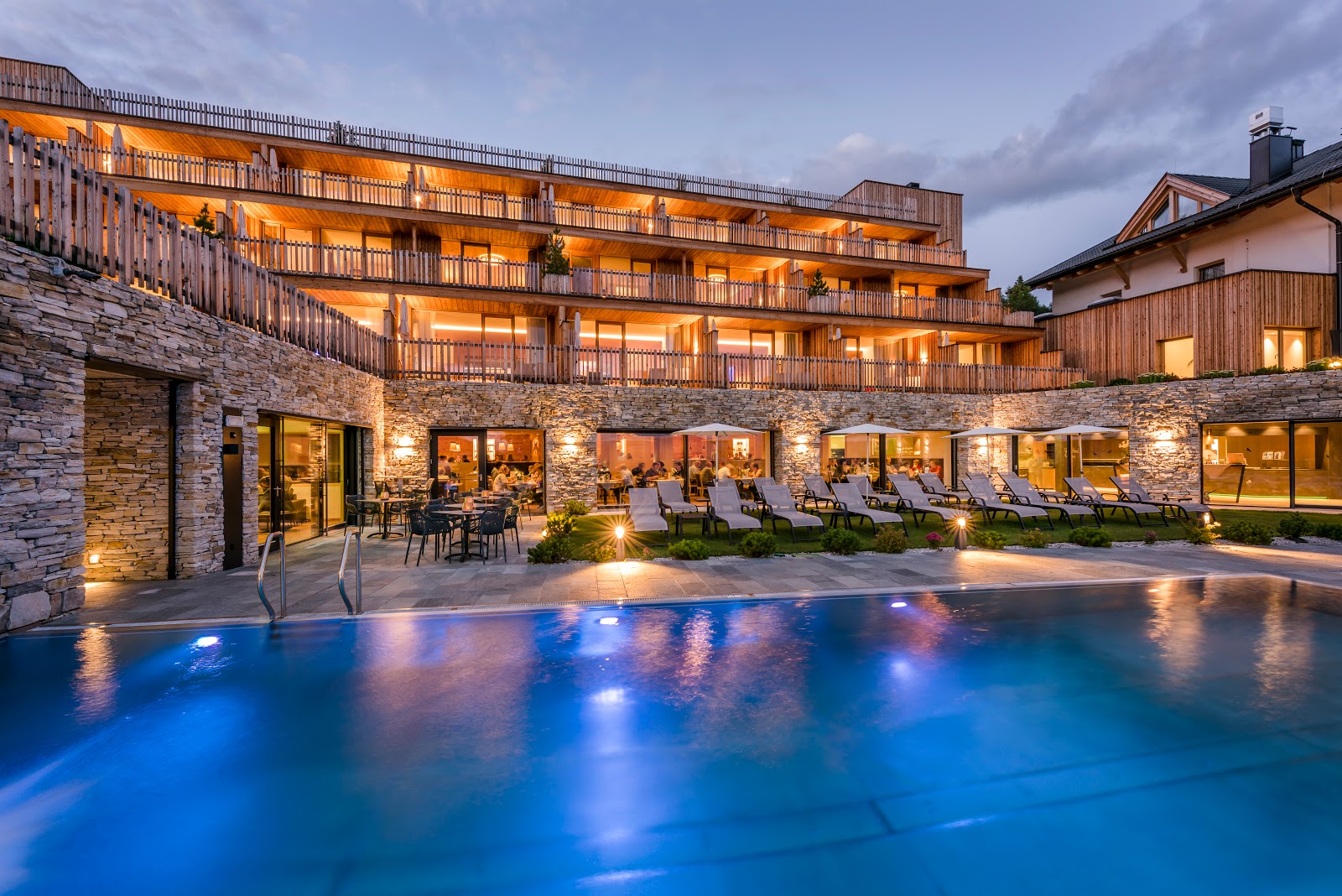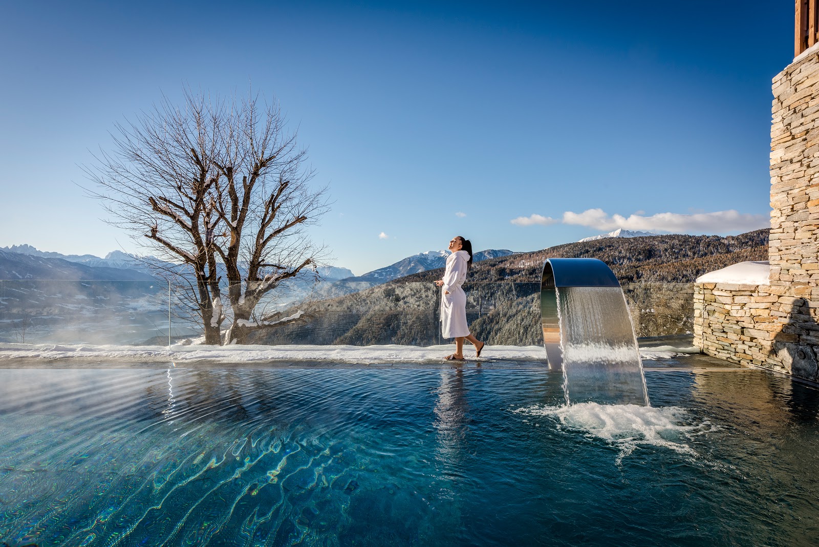 Das Monte Silva Mountain Spa erstreckt sich auf einer Fläche von 4.000 Quadratmetern und befindet sich rund 1.500 Meter über dem Meeresspiegel. Mit herrlichen Ausblicken lässt sich im Außenpool wunderbar entspannen. Zudem stehen hier eine Adults-only-Saunawelt und ein Familien-Saunabereich zur Verfügung. Im hoteleigenen Fitnessbereich bestehen Trainingsangebote mit Fitnesstrainern und Yogatrainern. Damit auch die Gaumenfreunden während eines Aufenthalts im Gourmethotel Tratterhof nicht zu kurz kommen, bietet die Cucina Alpina köstliche Erlebnisse für Liebhaber erstklassiger Kochkunst. La Cantina ist das Panoramarestaurant des Hauses, in welchem unter anderem Produkte regionaler Bauern zu Tiroler Gerichten verarbeitet werden.