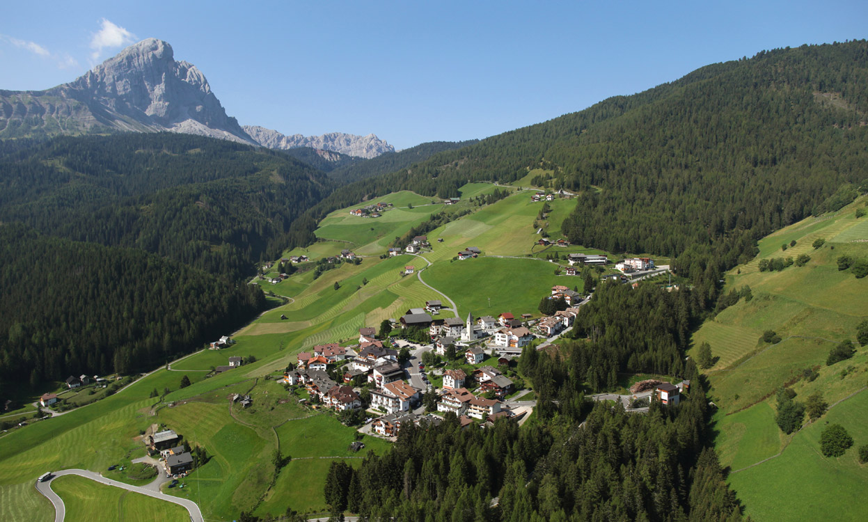 Das 3-Sterne-Hotel Antermoia erwartet Sie als Urlaubsgast im gleichnamigen, zur Gemeinde St. Martin in Thurn gehörenden Ort. Gelegen auf rund 1.500 Meter Höhe gilt Antermoia als höchstes Dorf der im mittleren Gadertal liegenden ladinischen Gemeinde. Das Hotel befindet sich mitten in diesem Bergdorf, das umgeben von Weiden und Wäldern unterhalb des zum Naturpark Puez-Geisler gehörenden Peitlerkofels liegt. Erreichbar ist das ruhig am Waldrand liegende Hotel Antermoia über die westliche von Bruneck vom Pustertal in südlicher Richtung abzweigende Gadertaler Staatsstraße SS 244.