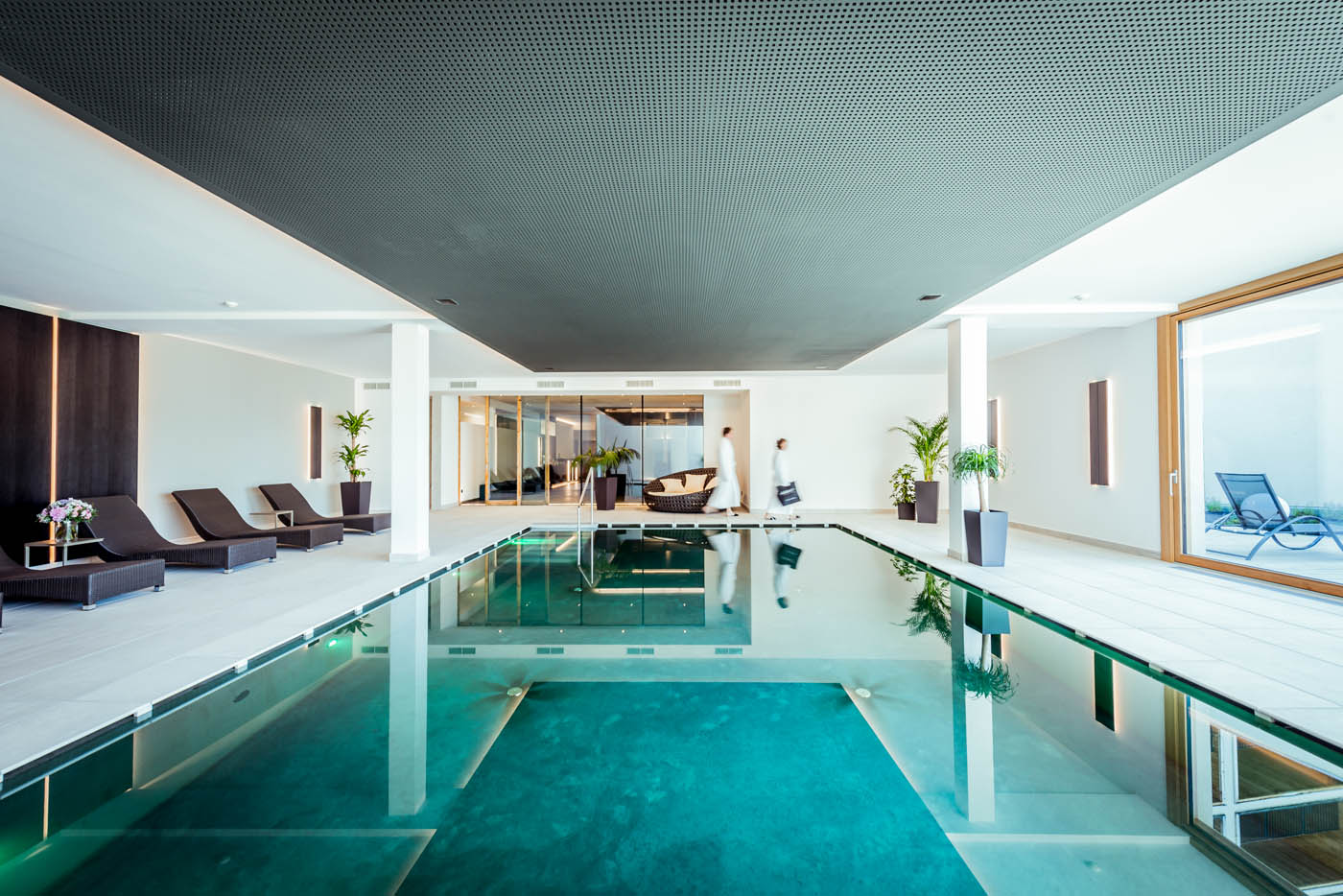 In der Wellnessoase der Villa Waldkönig erwarten Sie ein Hallenbad, zwei unterschiedliche Saunen, ein Solarium sowie ein Ruheraum. Bäder, Massagen und Beautypakete stehen ebenfalls, übrigens auch speziell für Paare, für Sie bereit.