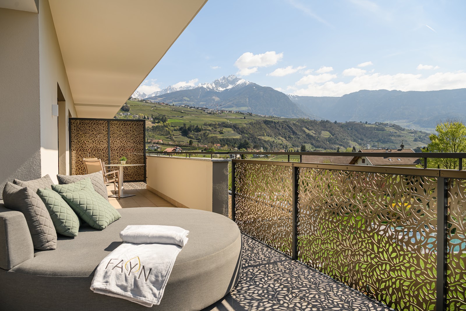 Willkommen im FAYN garden retreat hotel in Algund – einem besonderen Rückzugsort im Meraner Land, wo mediterranes Lebensgefühl auf alpine Weite trifft. Umgeben von Obstgärten und in ruhiger Panoramalage eröffnet sich ein beeindruckender Blick auf die Texelgruppe. Die charmante Kurstadt Meran mit ihren Lauben, Promenaden und saisonalen Märkten erreichen Sie in wenigen Minuten. Direkt vor der Haustür laden der Algunder Waalweg und der Tappeinerweg zu entspannten Spaziergängen mit herrlichen Ausblicken ein.