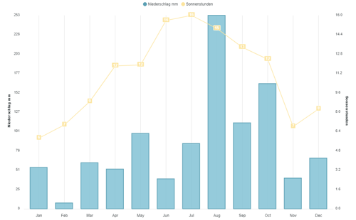 Niederschlag (mm) & Sonnenstunden (h)