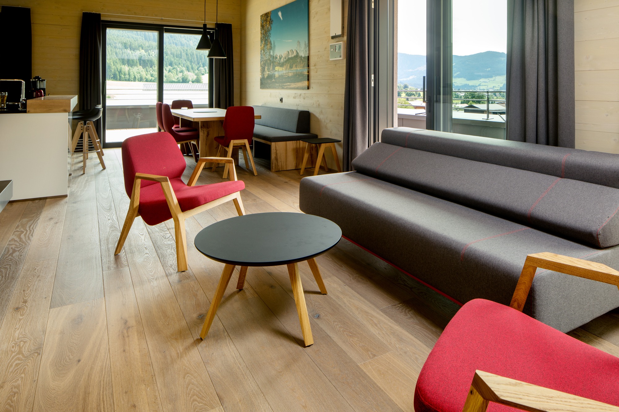 Mitten in den malerischen Kitzbüheler Alpen, genauer gesagt im Brixental, liegt das Chalet Das Heimsitz. Die Ferienunterkunft bietet Appartements, Chalets und Penthouse-Wohnungen. Moderne Einrichtungselemente und Komfort sorgen dafür, dass ein Urlaub im Chalet Das Heimsitz unvergesslich wird. Die unterschiedlichen Zimmer sind zwischen 39 und 106 Quadratmeter groß. Hier werden Paare auf der Suche nach einer kuscheligen Urlaubsunterkunft ebenso fündig, wie Familien, die ein großzügiges Feriendomizil buchen möchten. Das Brixental ist ein sonnenverwöhntes Plateau auf rund 800 Metern Höhe, was bestes Urlaubswetter und herrliche Ausblicke auf die imposante Bergwelt verspricht.