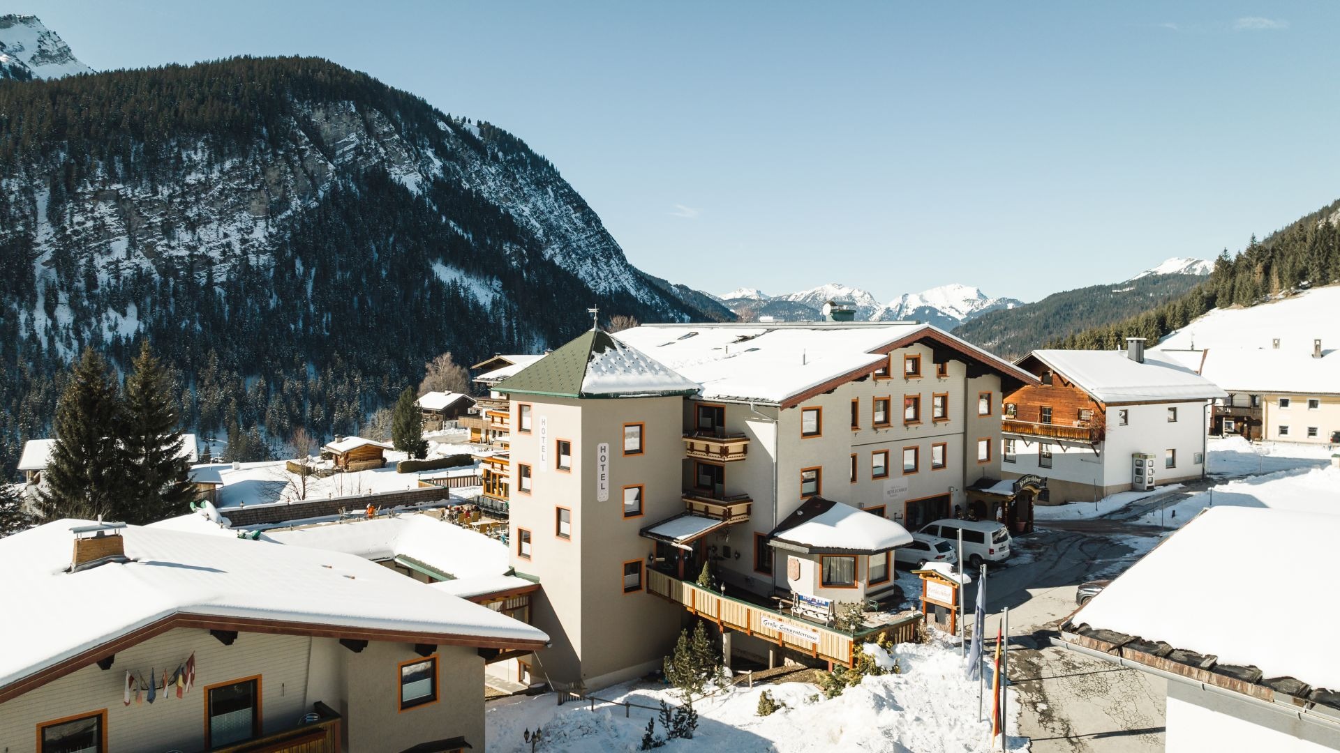 Das Vier-Sterne-Hotel ist in der Tiroler Gemeinde Berwang anzutreffen, das einen großen Parkplatz zur Verfügung stellt. Die Zufahrtsstraße ist leicht passierbar und knüpft an den hiesigen Rad- und Wanderweg an.