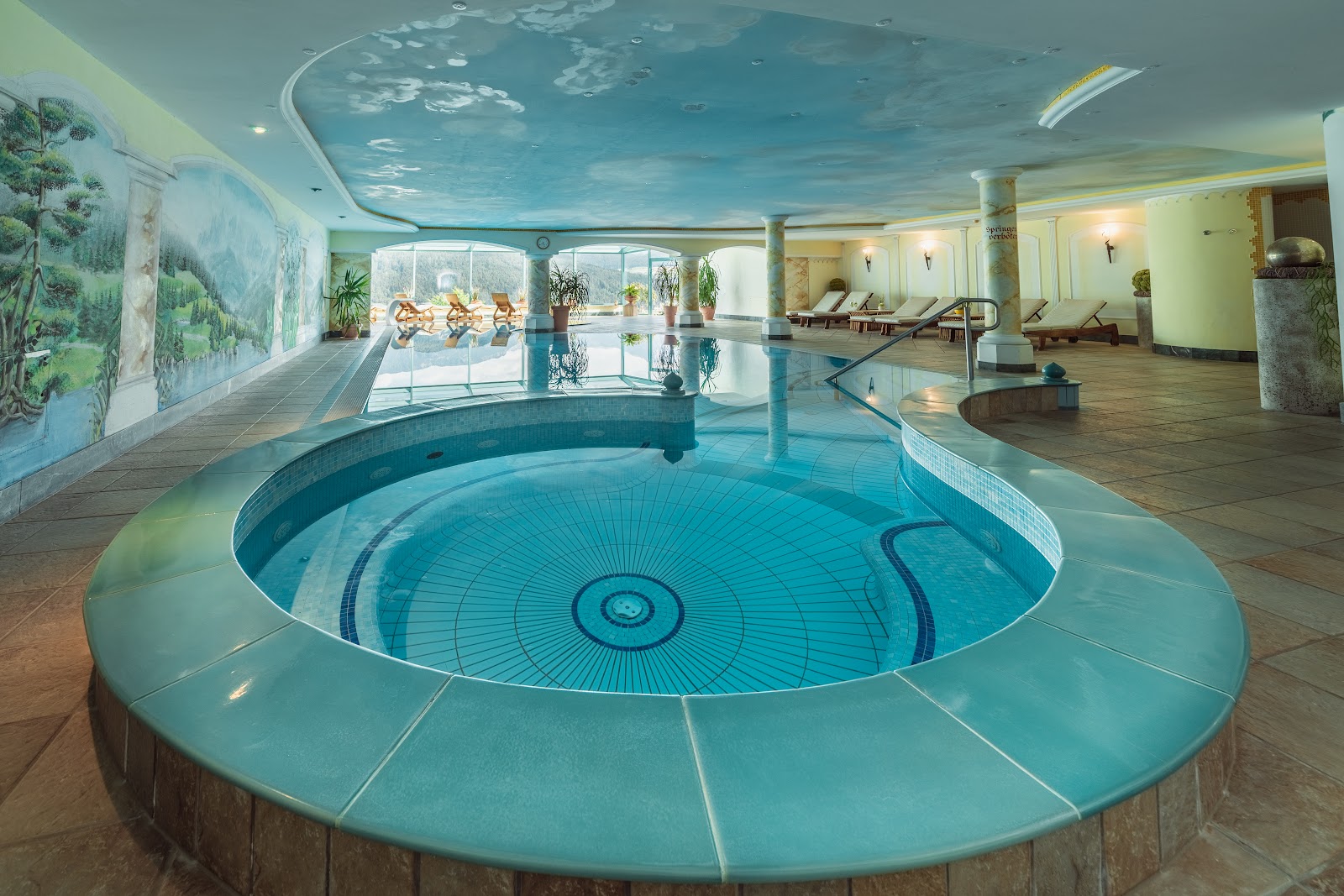 Zum Wellnessbereich des Hotels gehören ein Hallenbad mit Gegenstromanlage und integriertem Whirlpool. Im erfrischenden, solargeheizten Freibad können Sie ihre Bahnen mit Blick auf die Dolomiten absolvieren. Ein separater Outdoor-Whirlpool, ein Kneipp-Parcours, das Sauna-Angebot und verschiedenste Massagen & Beauty-Anwendungen runden das umfangreiche Wellnessangebot ab.
