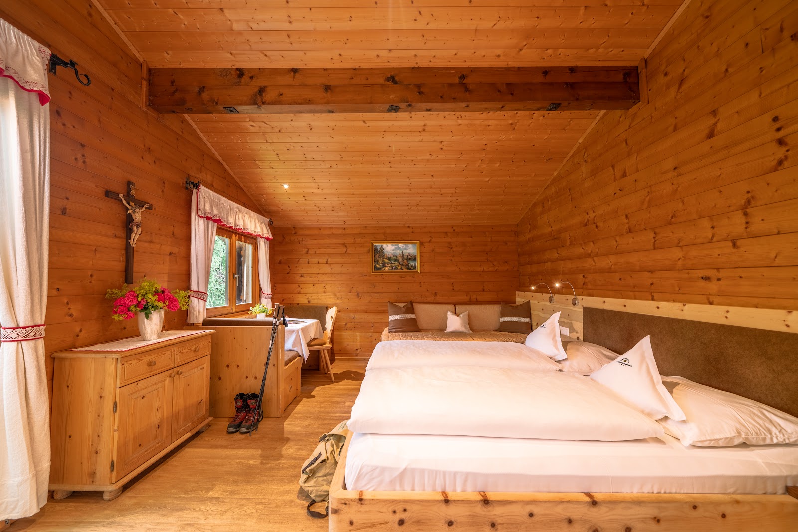 Im Sommer und Herbst laden wir unsere Gäste wöchentlich auf unserer hoteleigenen Alm auf 2.000 m zu einer geselligen Grillfeier mit Musik ein. Umliegende Almen und Gipfel wie der Villanderer Berg, das Rittner Horn oder die Kassianspitze warten mit mehr oder weniger anspruchsvollen Touren auf Sie. Gut und relativ schnell erreichbar sind aber auch die allseits bekannten Ausflugsziele Grödner Tal, Saiser Alm und die Barbianer Wasserfälle sowie die Dolomitenmassive von Schlern und Langkofel oder der Geislerspitzen.
