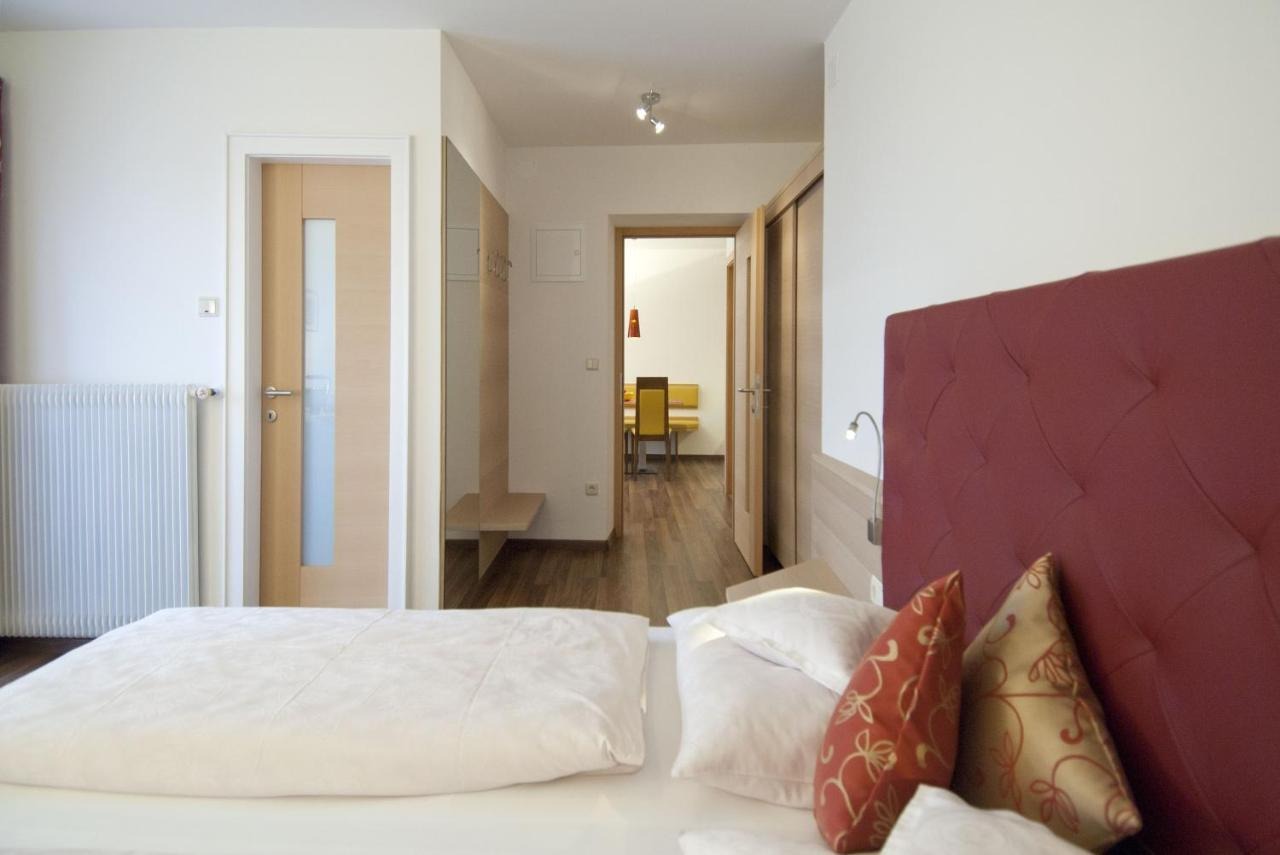 Die Residence der Familie Mazohl ist wie eine Oase der Ruhe und Entspannung: Die acht modern eingerichteten Appartements Obermaratscher in Algund verwöhnen mit einem fantastischen Blick und auf das Meraner Umland. Das grüne Tal ist bekannt für seine Weinstöcke, die zur Südtiroler Kulinarik beitragen. Die Appartements sind allesamt zwischen 32 und 55 Quadratmeter groß und eignen sich daher perfekt für Familien. Die Appartements verfügen über eine komfortable Küche und eine Fernsehecke. Einige der Zimmer haben einen eigenen Balkon, der die schöne Bergwelt noch näher bringt. Ein liebevoll eingerichteter Garten trägt zur Erholung bei, der mit einem Pool, Sonnenliegen und Palmen ausgestattet ist. Spielgeräte für die Kleinen liegen vor Ort bereit und die E-Bikes sind in der abschließbaren Garage unterzubringen.