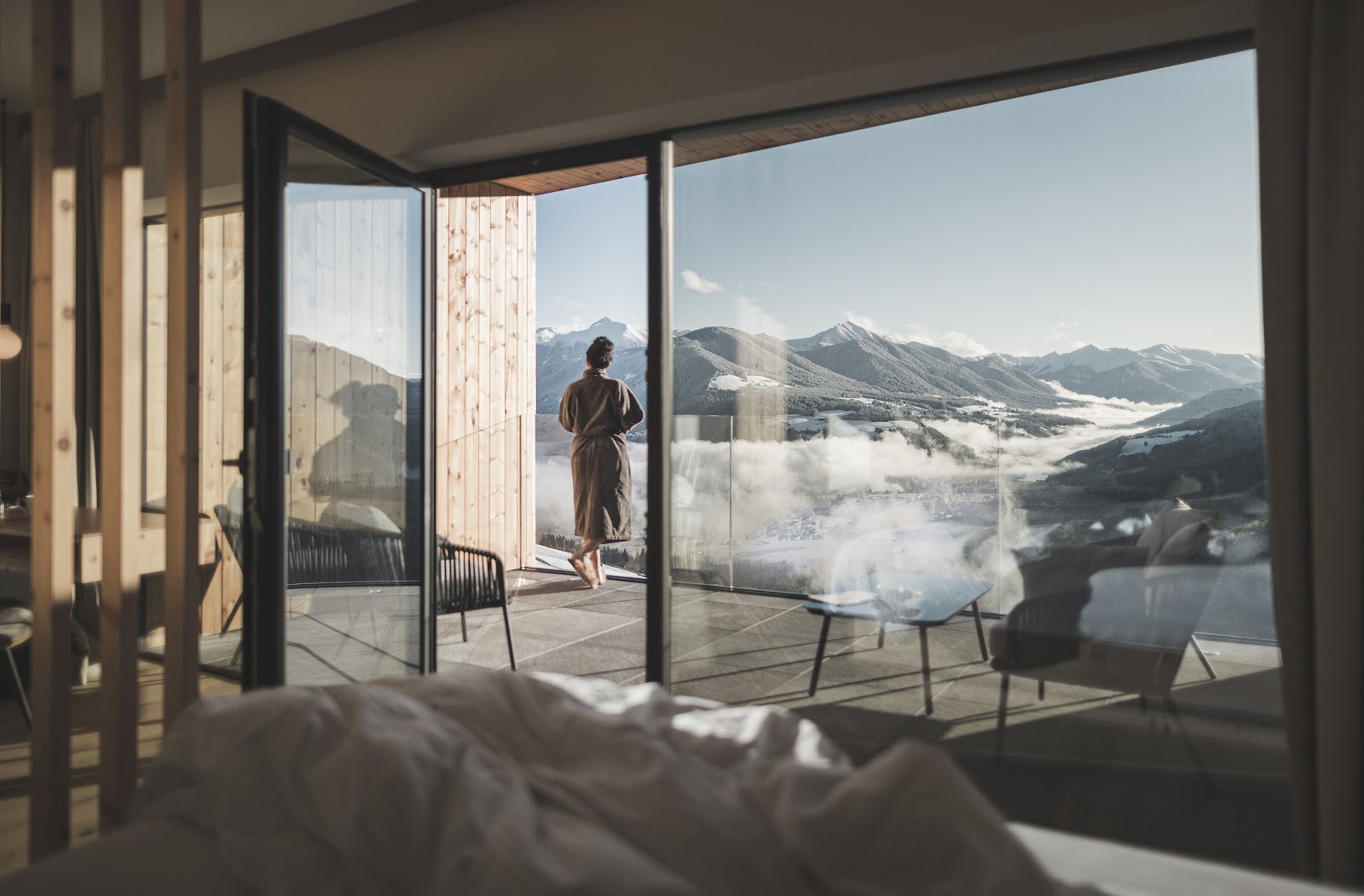 Zwischen Berg- und Skiabenteuer sollte man jedoch auch genügend Zeit im Hotel selbst einplanen. Nach dem kompletten Umbau 2020 präsentiert sich das Zirm in frischem Design mit viel Holz, Glas und Stein. Wer den Ausblick in vollen Zügen auskosten möchte, steigt am besten in einer der Panoramasuiten ab oder macht es sich schon beim Frühstück auf der Sonnenterrasse gemütlich.