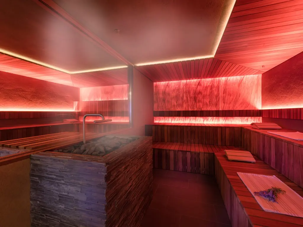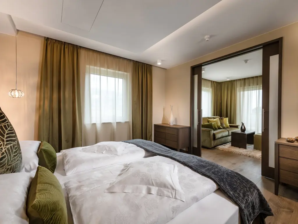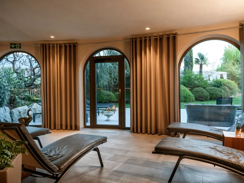 Die großzügigen Zimmer und Suiten mit Panoramabalkon überzeugen durch natürliche Materialien, elegantes Design und klare Linien. Im mediterranen Garten erwartet Sie eine grüne Wohlfühloase mit beheiztem Infinity Pool, gemütlichen Liegebereichen und viel Platz zum Abschalten. Im Spa- und Wellnessbereich sorgen Saunen, wohltuende Treatments und ruhige Rückzugsorte für tiefe Regeneration – perfekt nach einem aktiven Tag in der Natur.