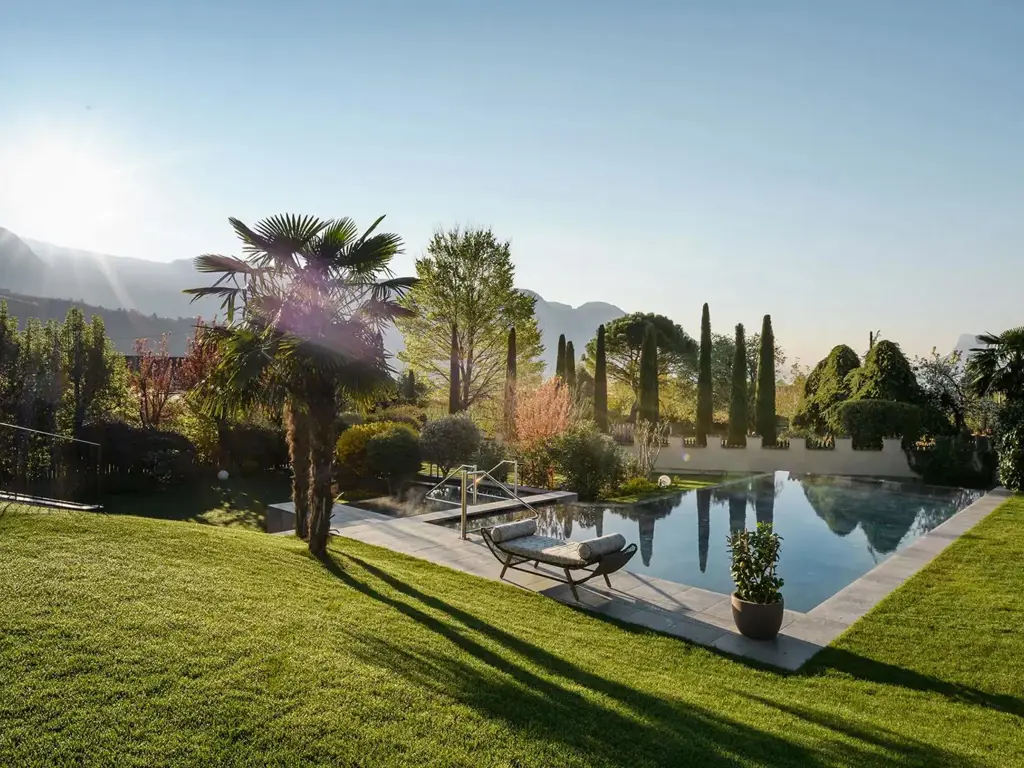 Willkommen im FAYN garden retreat hotel in Algund – einem besonderen Rückzugsort im Meraner Land, wo mediterranes Lebensgefühl auf alpine Weite trifft. Umgeben von Obstgärten und in ruhiger Panoramalage eröffnet sich ein beeindruckender Blick auf die Texelgruppe. Die charmante Kurstadt Meran mit ihren Lauben, Promenaden und saisonalen Märkten erreichen Sie in wenigen Minuten. Direkt vor der Haustür laden der Algunder Waalweg und der Tappeinerweg zu entspannten Spaziergängen mit herrlichen Ausblicken ein.
