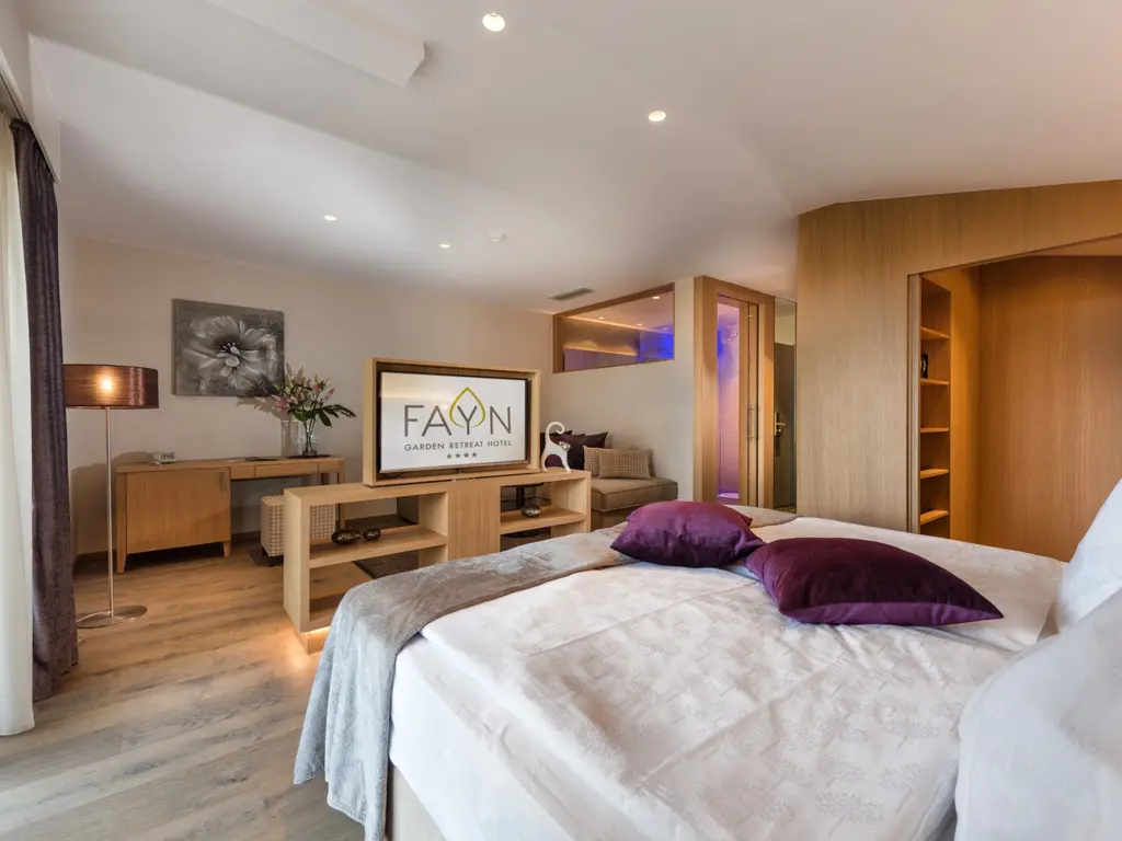 Kulinarisch setzt das FAYN auf regionale und saisonale Zutaten – vom vitalen Frühstück auf der Terrasse bis hin zu fein abgestimmten Abendmenüs. Passend dazu begleiten ausgewählte Südtiroler Weine aus dem Weinkeller jede Genussreise. Rund um das Hotel starten zahlreiche Wander- und Bike-Routen durch Weinberge und Obstwiesen, während Seilbahnen bequem hinauf in die Bergwelt der Texelgruppe führen. Für besondere Abwechslung sorgen außerdem die Therme Meran, nahegelegene Golfplätze, die Gärten von Schloss Trauttmansdorff sowie vielfältige kulturelle Highlights in Meran.